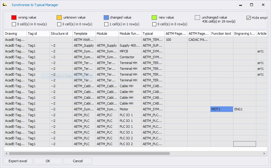 (AutoCAD to Typical Manager)It is also possible to synchronize AutoCAD electrical variable to Typical manager.