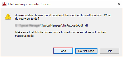 Loading the Typical Manager AutoCAD Add-In can also be done at startup of AutoCAD.