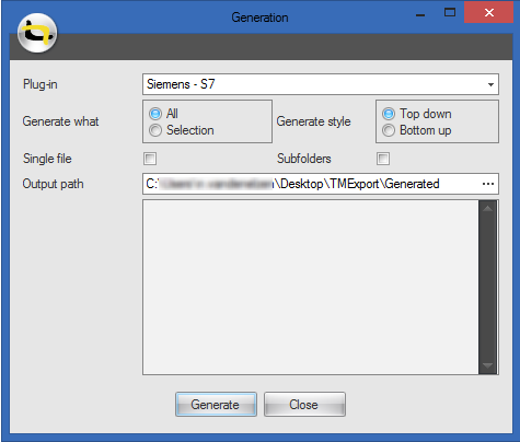 The files will be generated to ‘C:\’....\Desktop\TMExport\Generated |